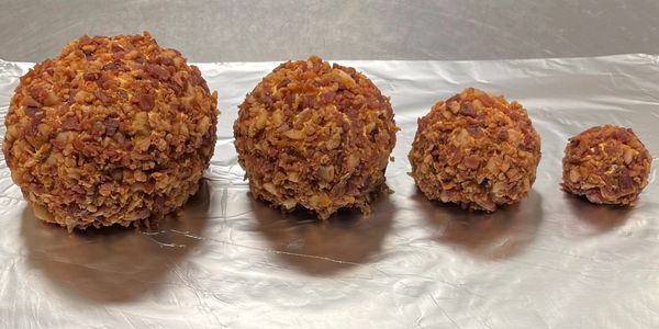 Grindy's offers their gourmet cheeseballs in four different sizes to fit everyone's cheeseball needs.